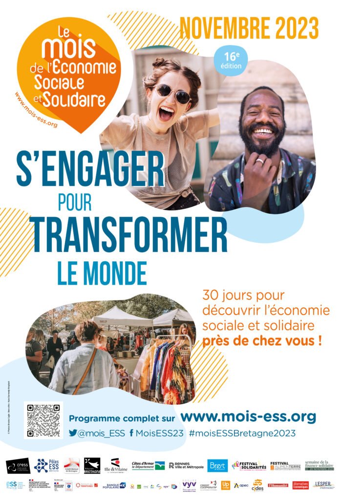 Certains événements du Mois de l’ESS organisés par l’Adess Pays de Brest s’inscrivent également dans le cadre de la Quinzaine de l’entrepreneuriat qui se déroulera du 13 au 27 novembre 2023..