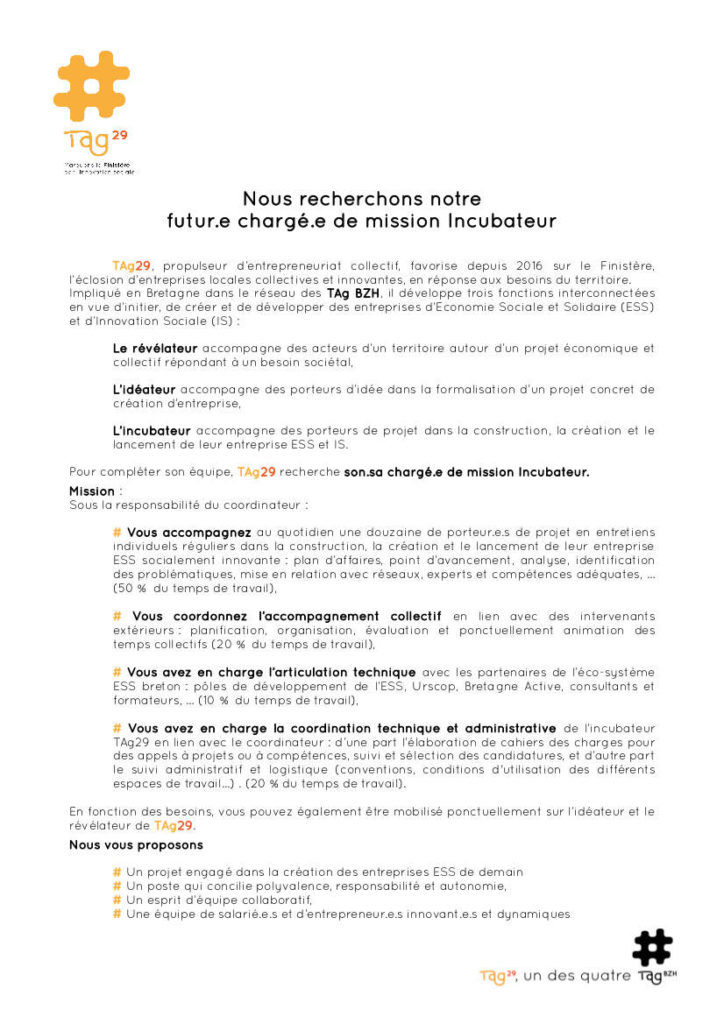 Le TAg29 recherche son.sa futur.e collaborateur.rice !