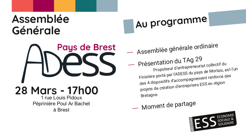 Le jeudi 28 mars se déroulera l’AG d’Adess dans nos locaux à partir de 17h00 :